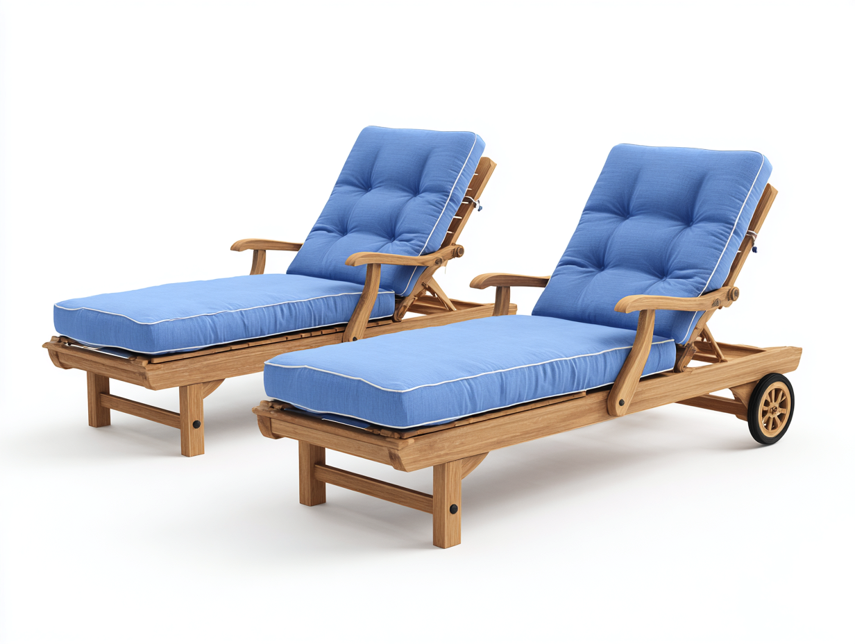 Gefertigt aus Holz bietet der Rahmen eine stabile und belastbare Konstruktion. Die Liegefläche ist mit Stoff in Blau ausgestattet und sorgt für angenehmen Komfort. Die natürliche Holzoptik unterstreicht die hochwertige Ausstrahlung und passt gut zu Gartenumgebungen.